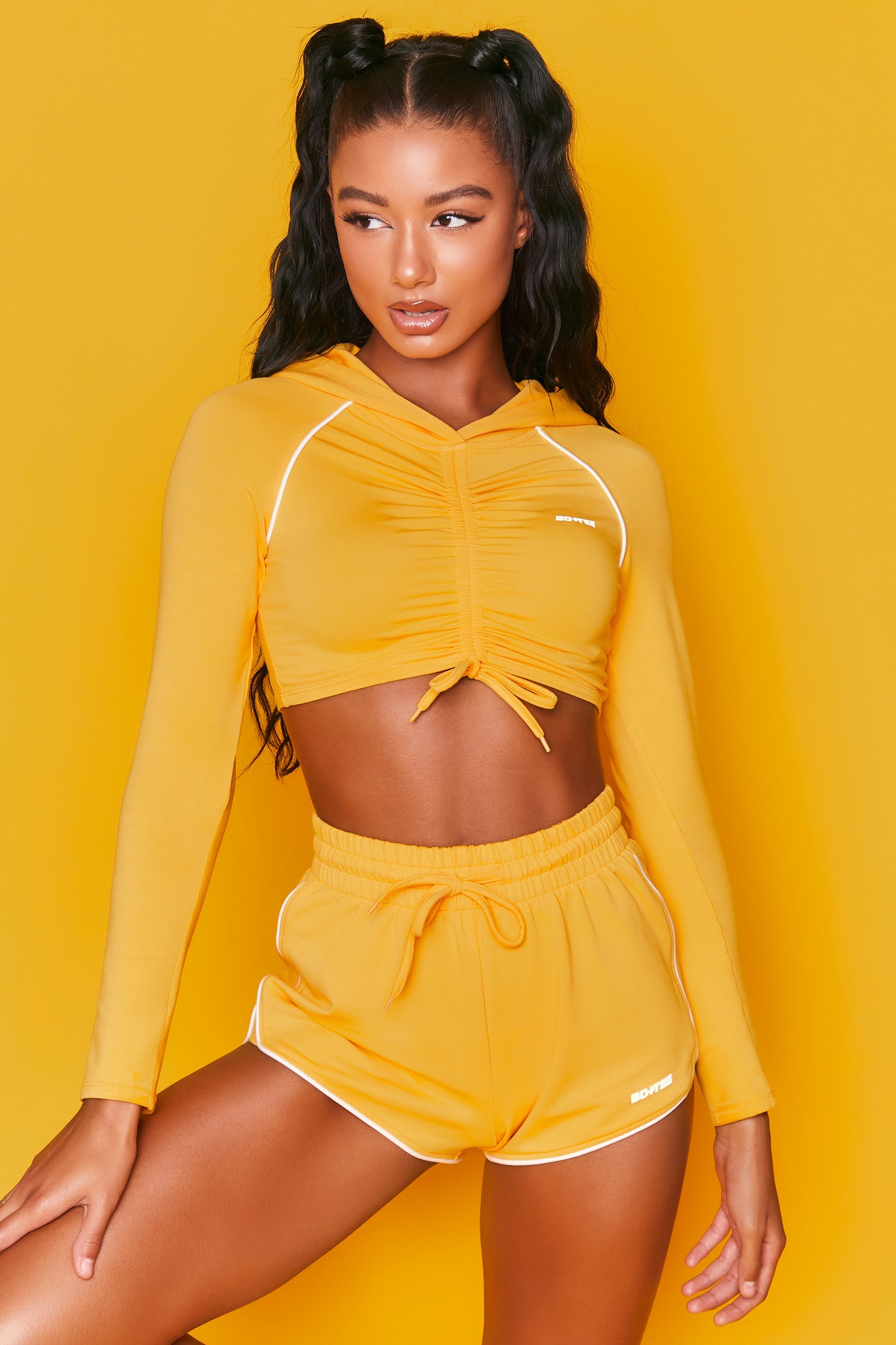 Keep on track in our soft sweat mini shorts. Cut in a loose fit with ribbed, elasticated waistband to blend comfort and movement, theyre complete with a drawstring tie fastening to keep you secure. The contrast piping and reflective logo branding add a touch of style both in and out of the gym.